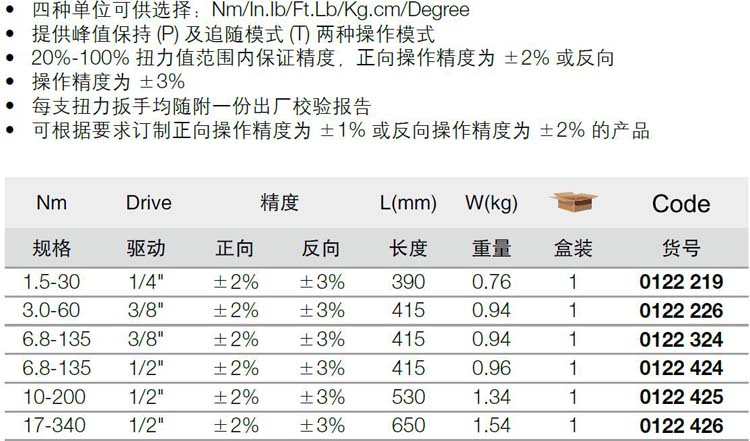 | 1A10206 | 0122425 | 规格:1/2寸 10-200Nm | 把 | 询价 | 7-15天 | |