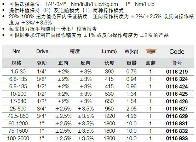 | 1A10178 | 0116425 | 规格:1/2寸 10-200 Nm | 把 | 询价 | 7-15天 | |