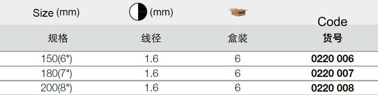 | 1A10475 | 0220006 | 规格:6寸 | 把 | 询价 | 7-15天 | |