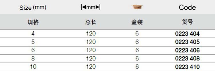 | 1A10671 | 0223406 | 规格:6x120mm | 支 | 询价 | 7-15天 | |