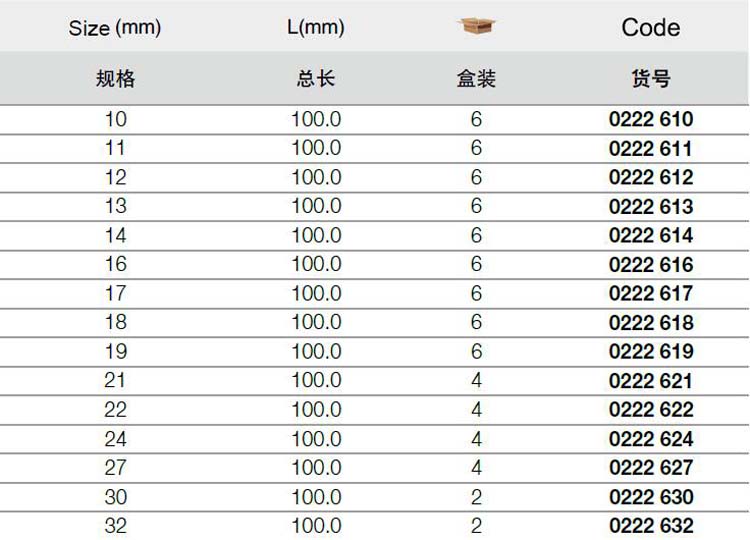 | 1A10643 | 0222610 | 规格:10mm | 支 | 询价 | 7-15天 | |