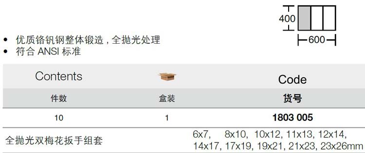 > 全部产品分类 > 五金工具 > 手动工具 > 扳手/套筒/扭矩扳手 > 组套扳手 > 10件套双梅花扳手