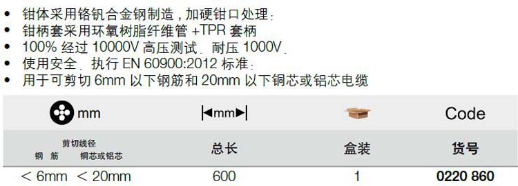 > 全部产品分类 > 五金工具 > 手动工具 > 电力/电子专用 > 绝缘工具 > 22mmm²双色绝缘电缆钳剪