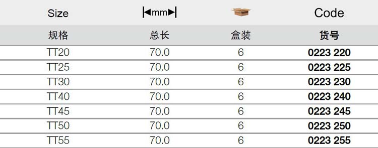 | 1A10658 | 0223220 | 规格:TT20 | 支 | 询价 | 7-15天 | |