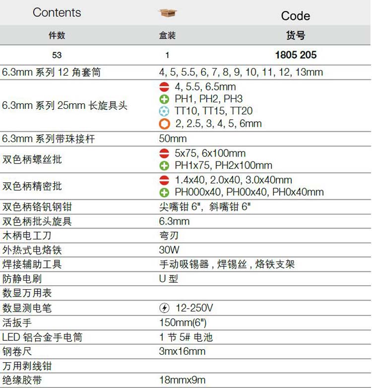 > 全部产品分类 > 五金工具 > 组套工具 > 综合性套装工具 > 53件电讯工具组套