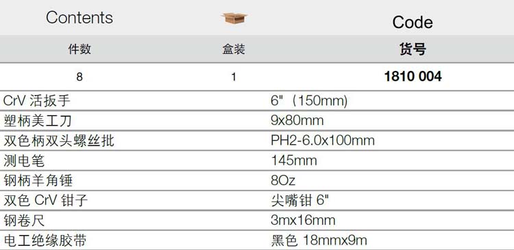 > 全部产品分类 > 五金工具 > 组套工具 > 综合性套装工具 > 8件通用维修工具组套