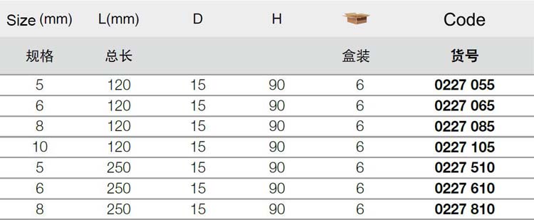 | 1A10688 | 0227065 | 规格:6x120mm | 把 | 询价 | 7-15天 | |