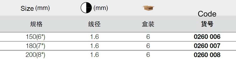 | 1A10748 | 0260006 | 规格:6寸 | 把 | 询价 | 7-15天 | |