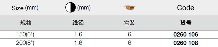 | 1A10751 | 0260106 | 规格:6寸 | 把 | 询价 | 7-15天 | |