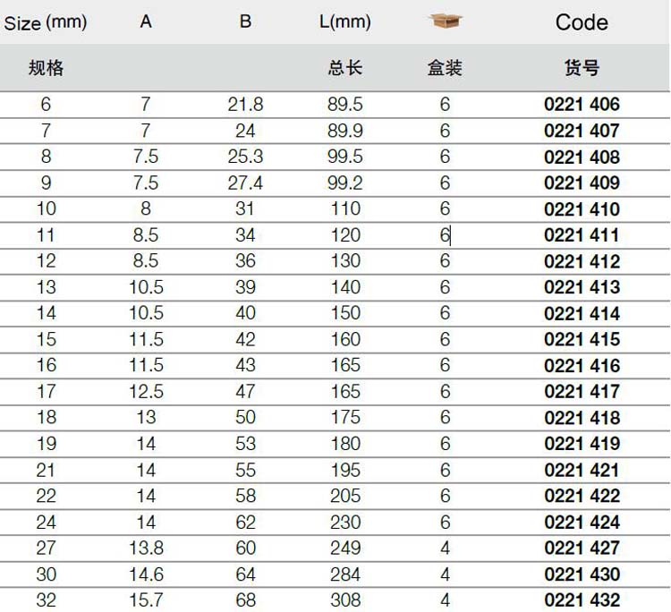 | 1A10549 | 0221406 | 规格:6mm | 把 | 询价 | 7-15天 | |
