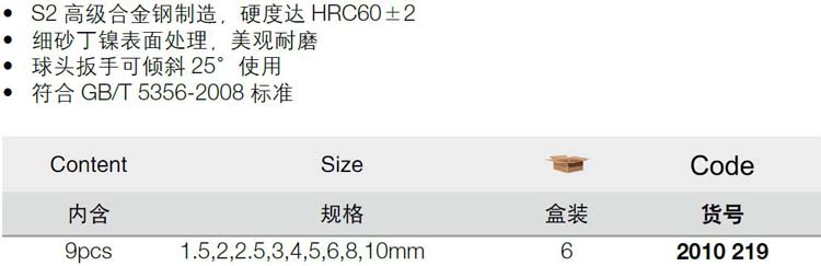 > 全部产品分类 > 五金工具 > 手动工具 > 螺丝刀/内六角 > 内六角组套 > 9件套公制加长球头内六角