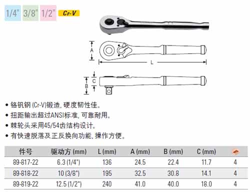 | 1A0437 | 89-818-22 | 驱动方:10mm,长度:195mm | 把 | ¥76.80元 | 1-3天 | |