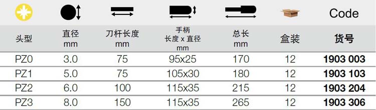 | 1A10828 | 1903306 | 规格:PZ3x150mm | 把 | 询价 | 7-15天 |