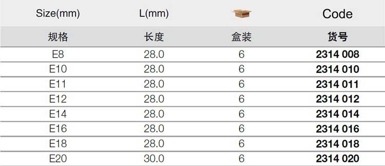 | 1A11602 | 2314020 | 规格:E20 | 支 | 询价 | 7-15天 |