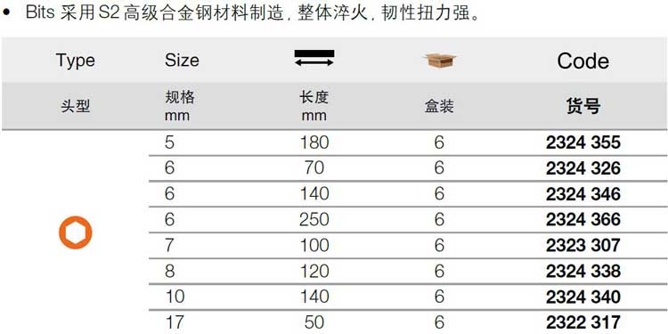 | 1A11646 | 2324326 | 规格:70MM长六角旋具套筒6mm | 支 | 询价 | 7-15天 | |