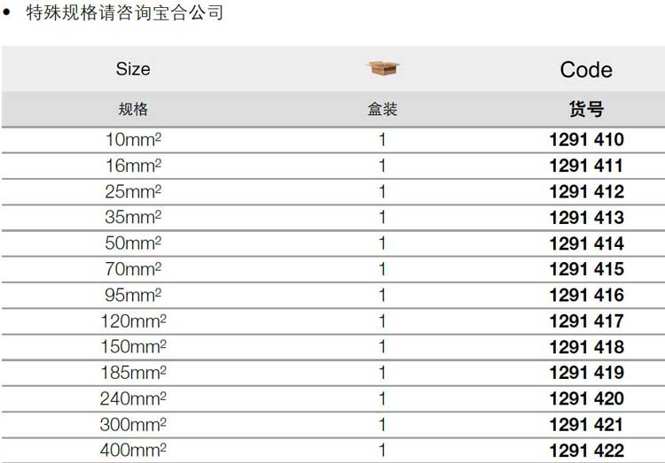 | 1A11979 | 1291412 | 规格:25mm² | 套 | 询价 | 7-15天 | |