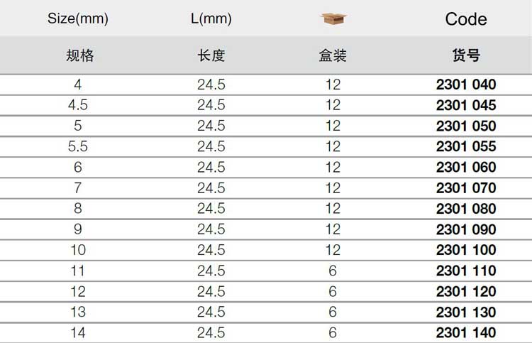 | 1A11447 | 2301140 | 规格:14MM | 支 | 询价 | 7-15天 |