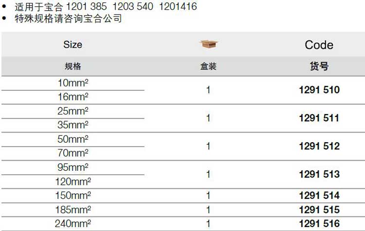 | 1A11992 | 1291512 | 规格:50/70mm2 | 套 | 询价 | 7-15天 | |