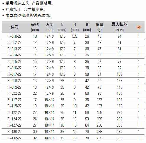 | 1A0505 | RI-010-22 | 10mm,方头:9x12mm | 把 | ¥162.90元 | 7-15天 | |