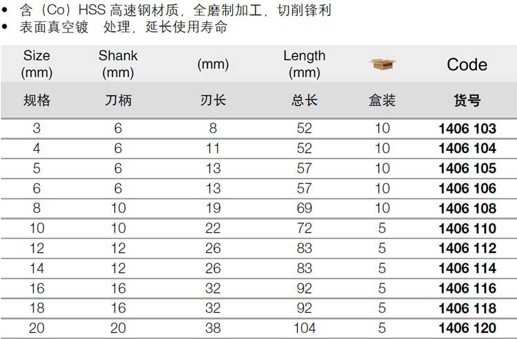> 全部产品分类 > 五金工具 > 手动工具 > 更多通用工具 > 其他通用工具 > 镀钛含钴全磨制立铣刀