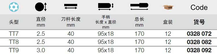 | 1A12032 | 0328072 | 规格:T7x40mm | 把 | 询价 | 7-15天 | |
