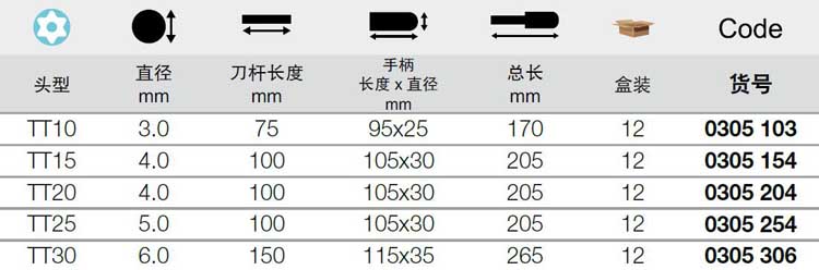 | 1A12010 | 0305204 | 规格:TT20x100mm | 把 | 询价 | 7-15天 | |