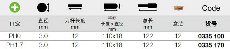 | 1A12047 | 0335100 | 规格:PH0x12mm | 把 | 询价 | 7-15天 | |