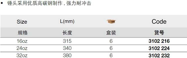 | 1A11899 | 3102116 | 规格:16oz | 把 | 询价 | 7-15天 | |