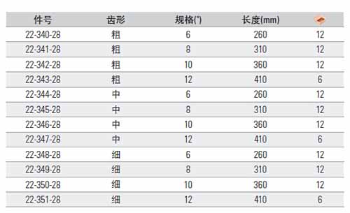| 1A2268 | 22-350-28 | 10寸,长度:360mm, 齿型:细 | 把 | ¥58.90元 | 1-3天 | |