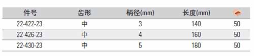 | 1A2230 | 22-422-23 | 3x140mm,长度:140mm,柄径:3mm,齿型:中 | 把 | ¥4.70元 | 1-3天 | |