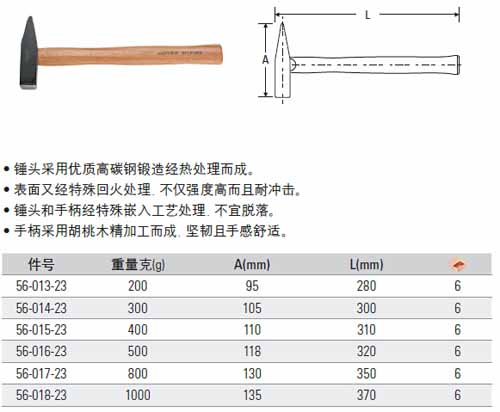 | 1A2420 | 56-016-23 | 长度:320mm,锤头长度:118mm,重量:500克 | 把 | ¥78.80元 | 1-3天 | |