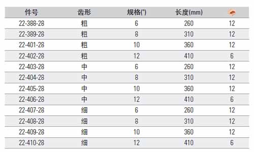 | 1A2240 | 22-405-28 | 10寸,长度:360mm, 齿型:中 | 把 | ¥66.20元 | 1-3天 | |