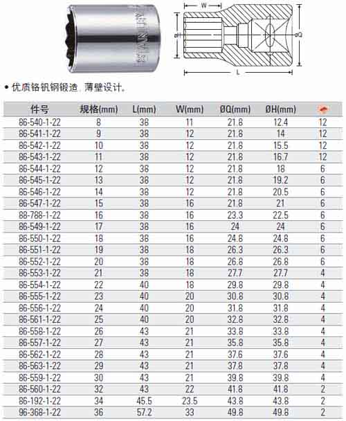 > 全部产品分类 > 五金工具 > 手动工具 > 扳手/套筒/扭矩扳手 > 套筒 > 12.5MM系列公制12角标准套筒
