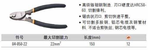 | 1A2859 | 84-858-22 | 长度:150mm,剪切范围:0-22mm2 | 把 | ¥96.70元 | 1-3天 | |