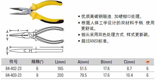 > 全部产品分类 > 五金工具 > 手动工具 > 通用钳类 > 尖嘴钳 > 双色柄尖嘴钳