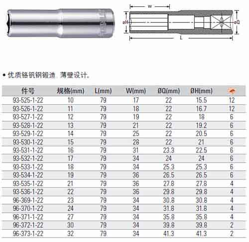 > 全部产品分类 > 五金工具 > 手动工具 > 扳手/套筒/扭矩扳手 > 套筒 > 12.5MM系列公制6角长套筒