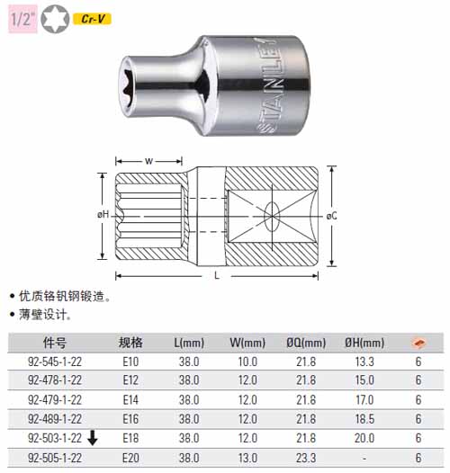 > 全部产品分类 > 五金工具 > 手动工具 > 扳手/套筒/扭矩扳手 > 套筒 > 12.5MM系列花形套筒