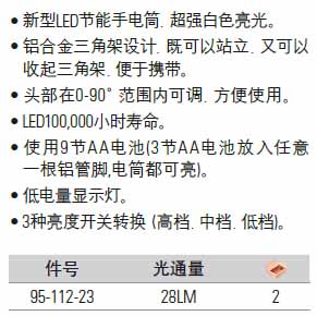 > 全部产品分类 > 五金工具 > 手动工具 > 更多通用工具 > 照明 > 中型369TM三角架手电筒