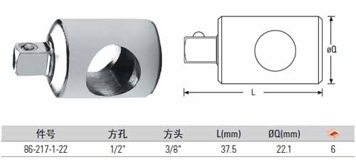 | 1A1323 | 86-217-1-22 | 方孔:1/2寸, 方头:3/8寸,长度:37.5mm | 把 | ¥17.10元 | 1-3天 |