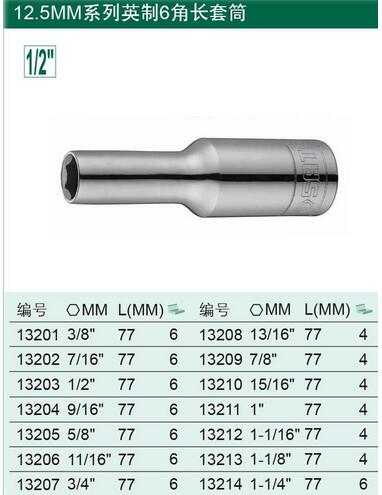 > 全部产品分类 > 五金工具 > 手动工具 > 扳手/套筒/扭矩扳手 > 套筒 > 12.5MM系列6角英制长套筒